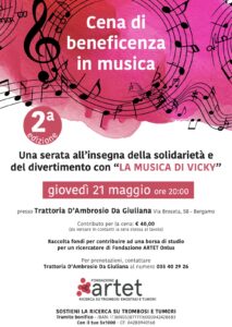 Il ricavato dell’evento finanzierà una borsa di studio per un giovane ricercatore. Per prenotazioni contattare la Trattoria D’Ambrosio Da Giuliana al numero 035 402926.